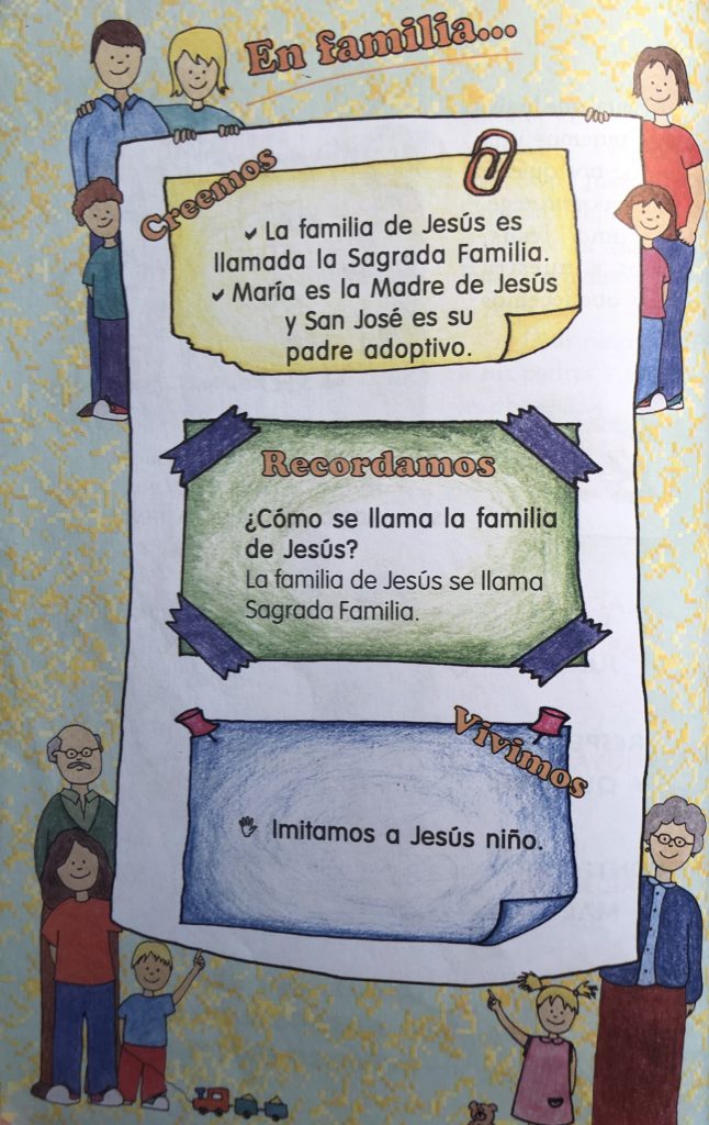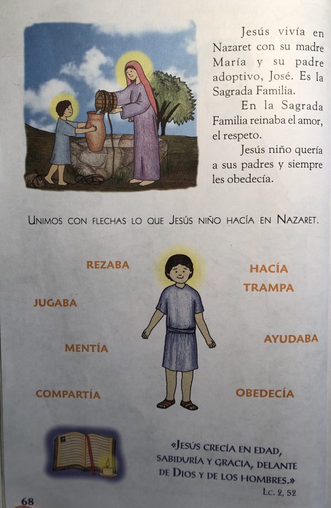 Cuarto texto doctrinal L1 U2 T 10: en Nazaret, Jesús fue niño y vivió en una familia, como nosotros.
